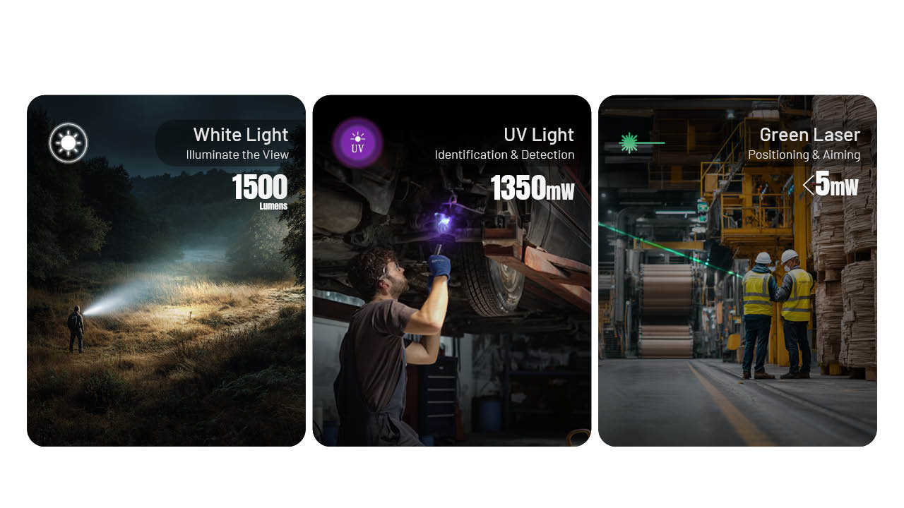 1500 Lumens • UV • Green Laser